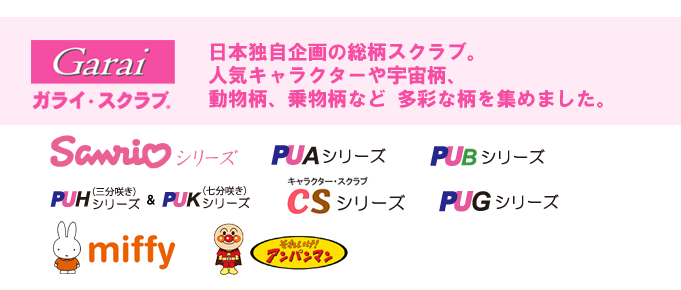 (総柄スクラブ & 日本メーカー無地スクラブ)