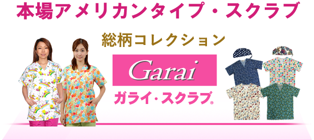 - 日本独自企画の総柄スクラブ。人気キャ ラクターや宇宙柄、動物柄、乗物柄など 多彩な柄を集めました。